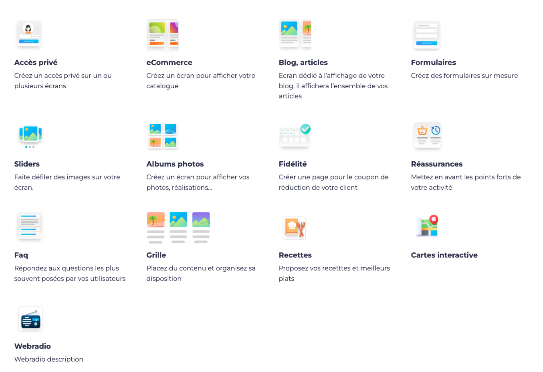 Enrichissez le contenu de votre site internet en utilisant notre catalogue de fonctionnalités.