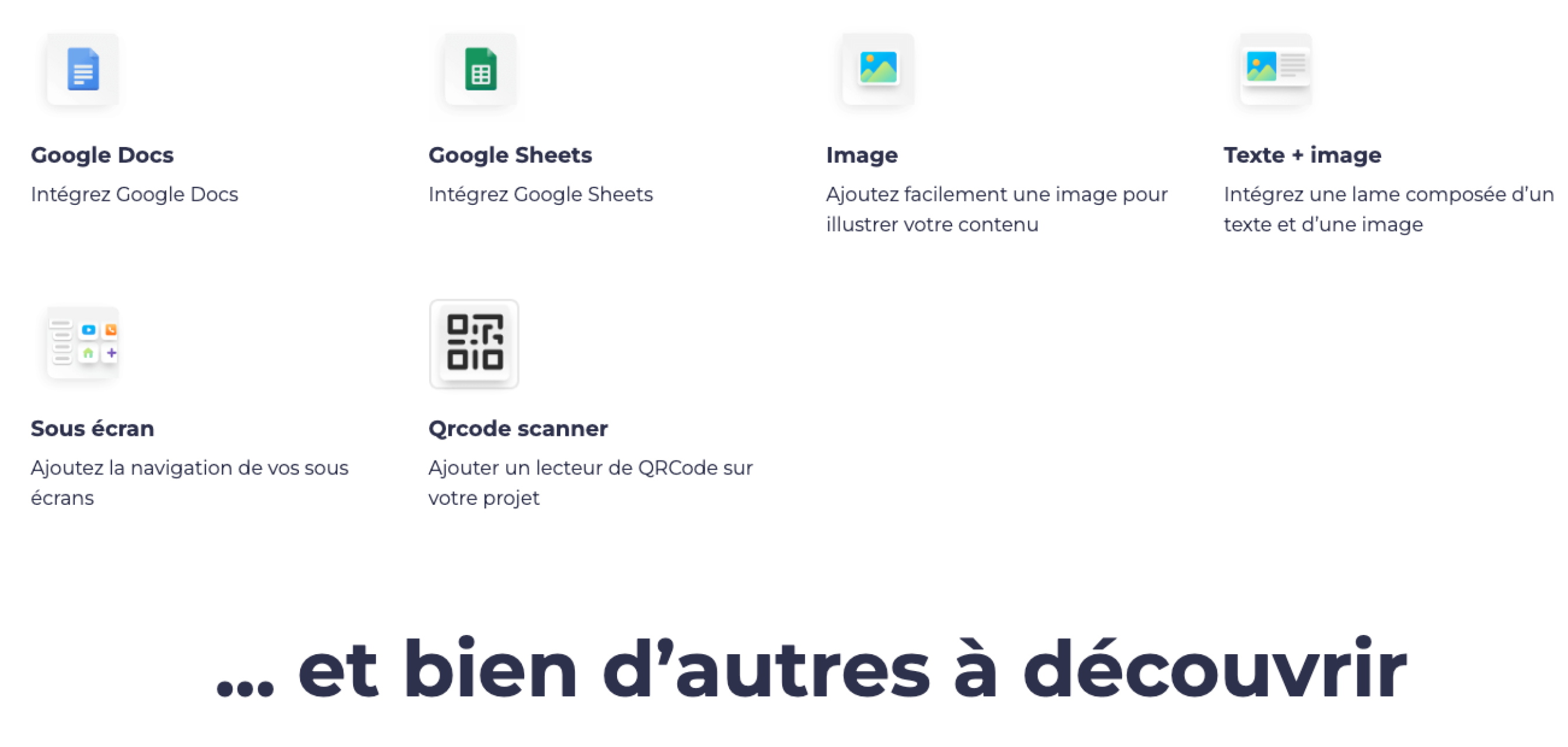 Les fonctionnalités permettent d’enrichir le contenu de votre projet.