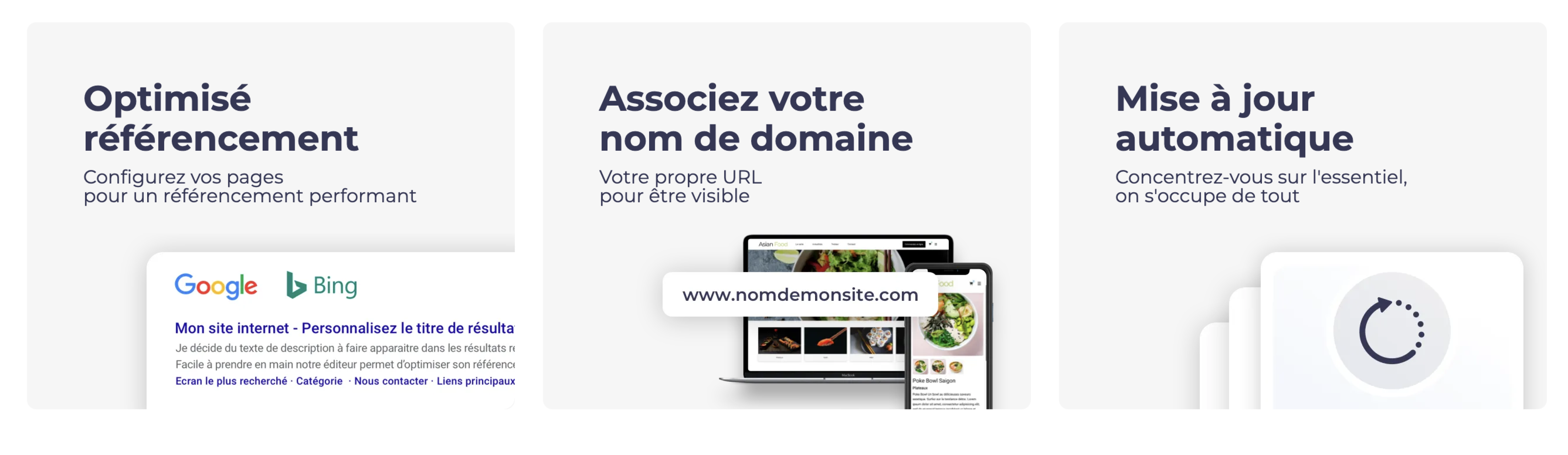 Solution idéale pour un site vitrine, un blog ou une boutique en ligne, notre outil s’adapte à de nombreuses activités.